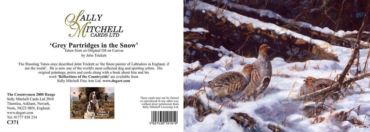 Grey Partridges in The Snow' Pack of 10 Christmas Cards by John Trickett C371x
