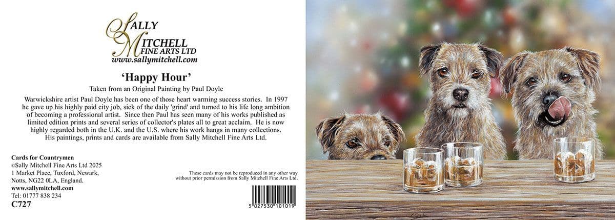 'Happy Hour' Pack of 10 Border Terrier Christmas cards by Paul Doyle C727x
