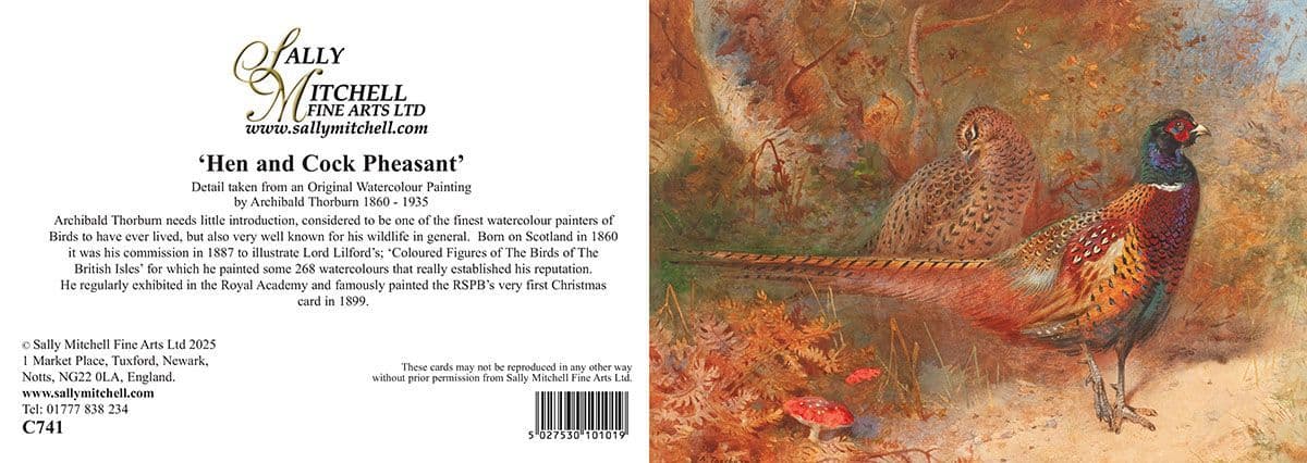 'Hen and Cock Pheasants' Pheasant Christmas Cards by Archibald Thorburn C741x