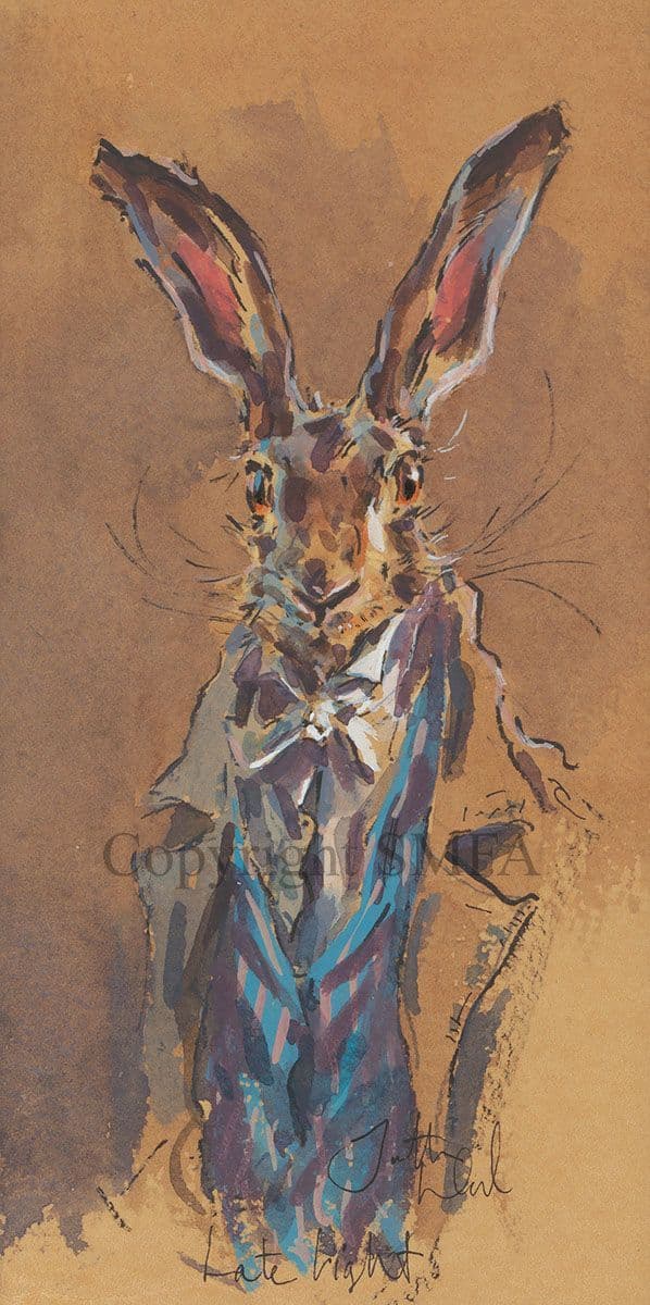 'Late Light' original Humorous Hare painting by Jonathan Walker