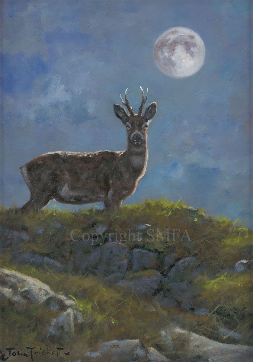 'Midnight Roe' Original Roebuck Painting by John Trickett