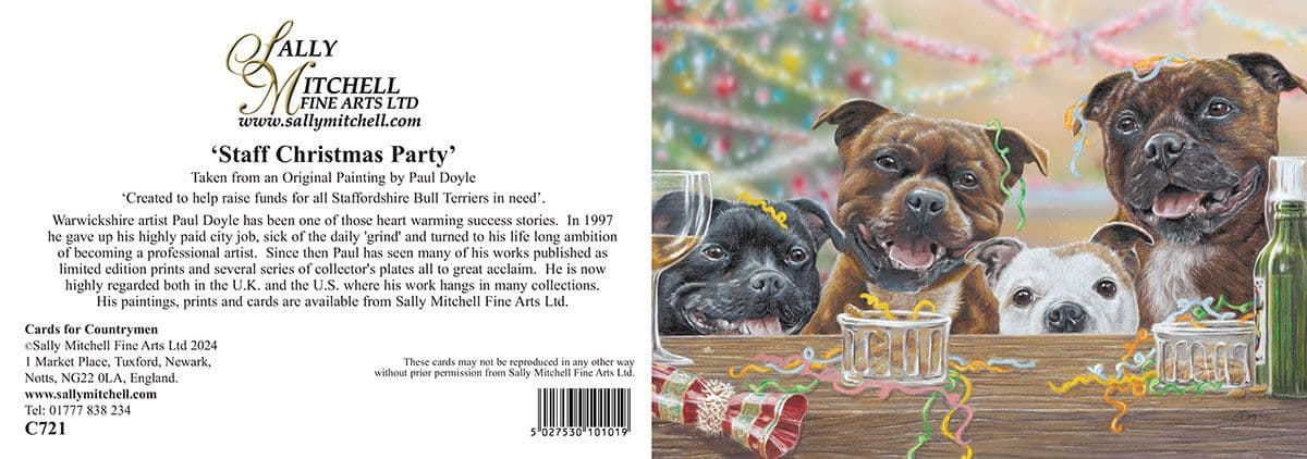 Staffordshire Bull Terrier White Brindle Black Blank Greetings Card 'The Gang' by Paul Doyle C154