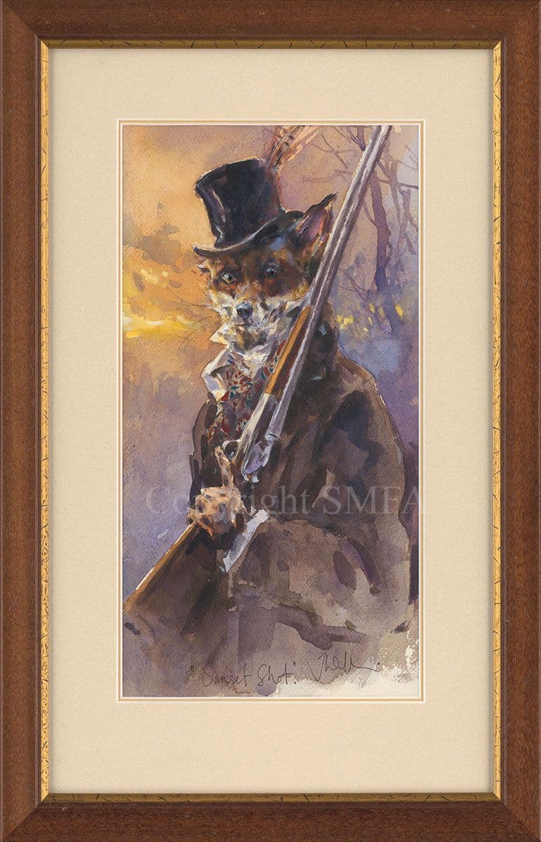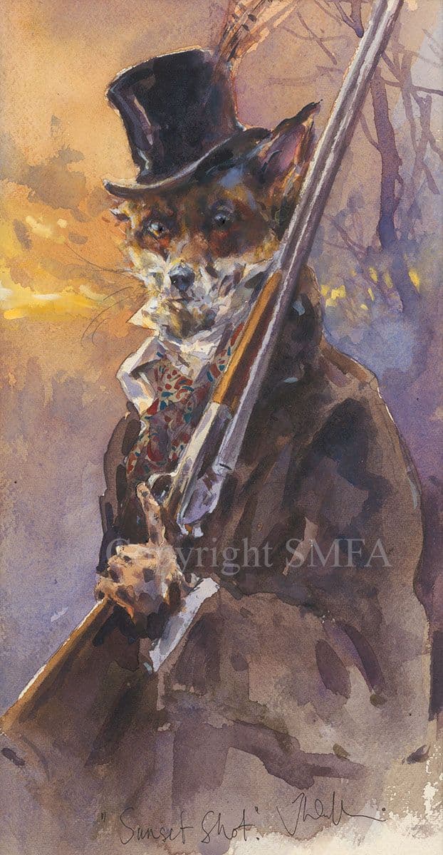 'Sunset Shot' Original Humorous Shooting Watercolour by Jonathan Walker